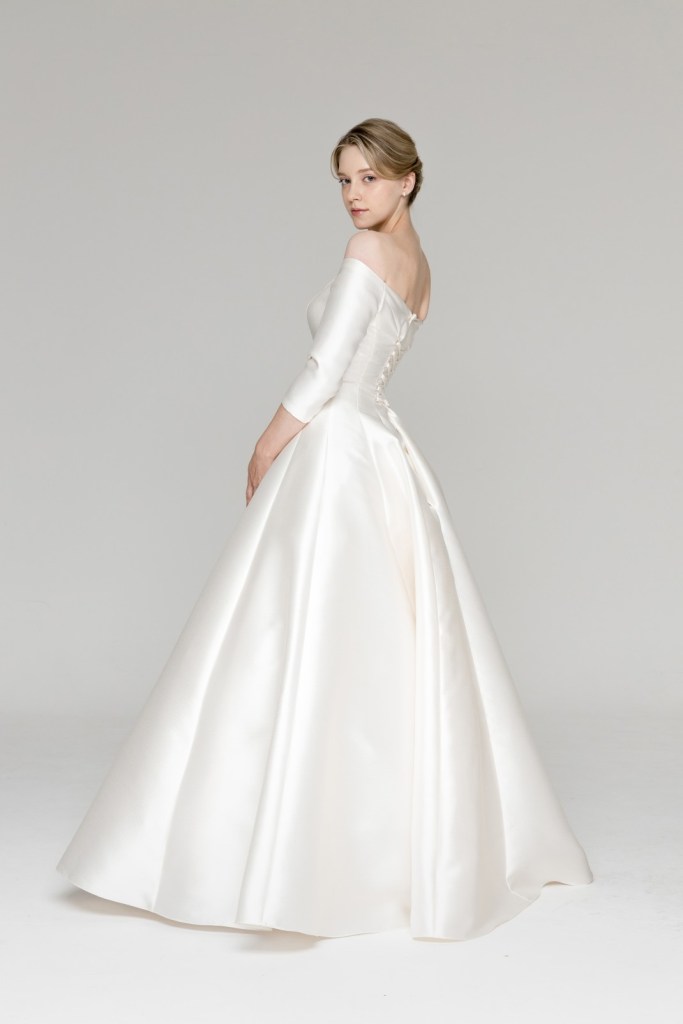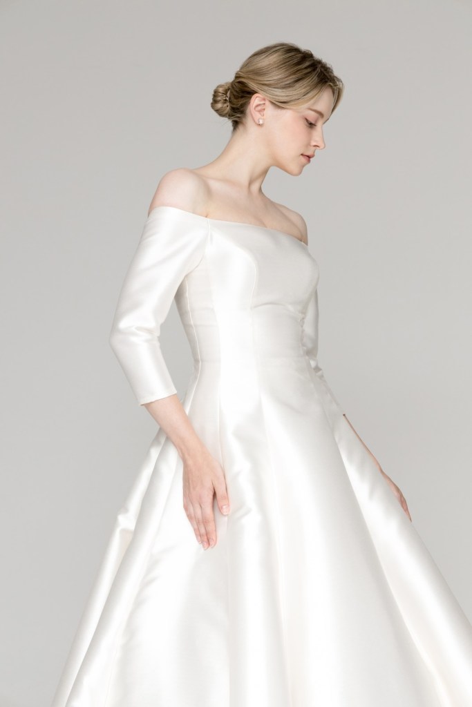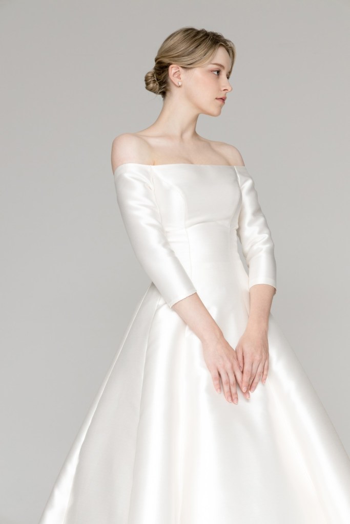 - 탄탄한 실크 소재가 몸매 라인을 정돈해 주며, 목선과 쇄골을 강조하고 싶은 신부님이나 상체 노출은 최소화하면서 우아함을 살리고 싶은 분들께 최적의 피팅감을 선사합니다.