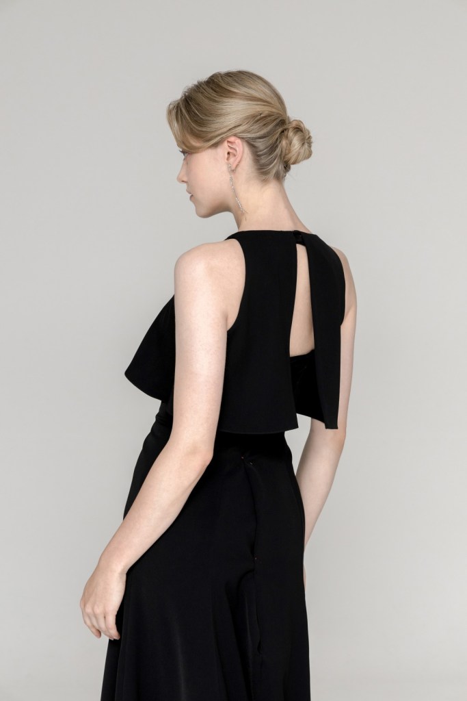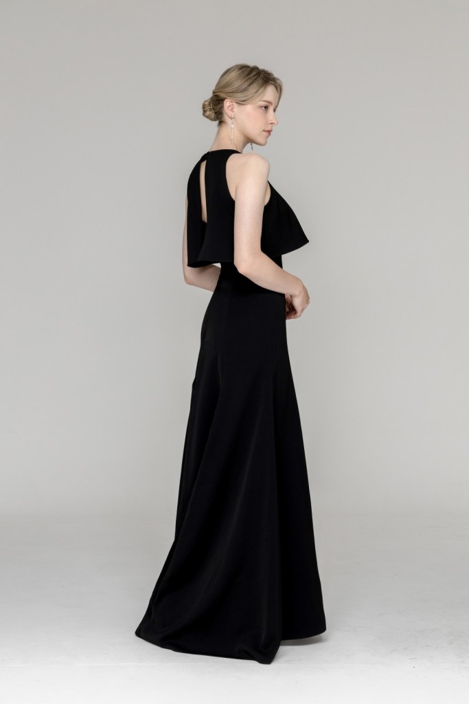 깊이 있는 블랙 컬러가 자아내는 압도적인 세련미와 간결한 실루엣이 조화를 이루며, 등 라인을 따라 흐르는 구조적인 디자인이 절제된 기품을 완성합니다.